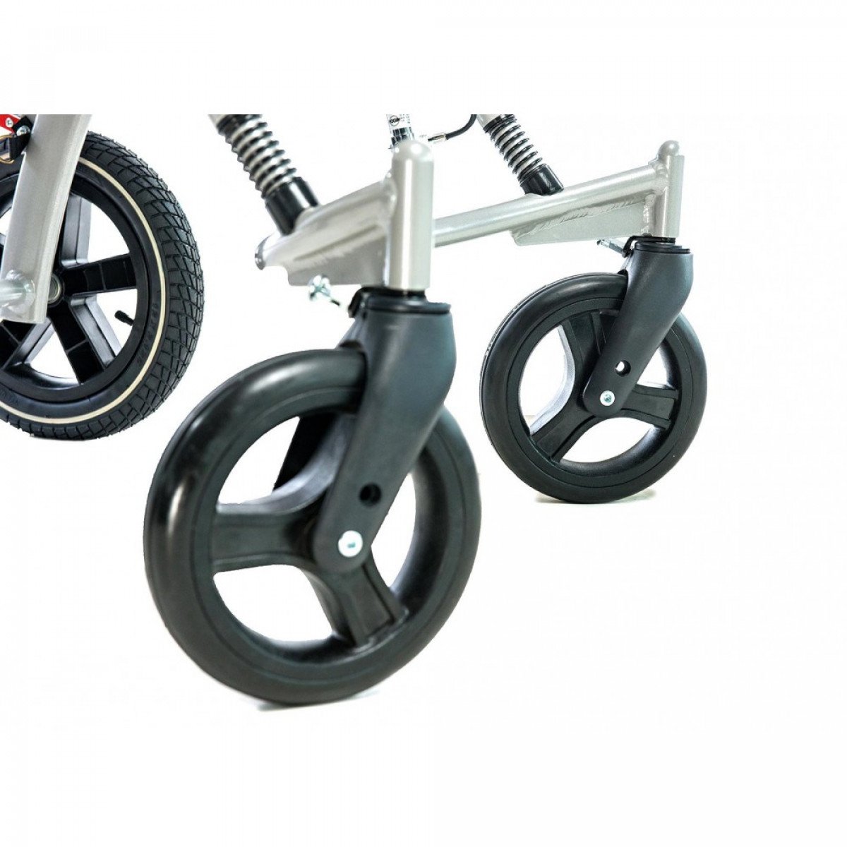 - Наличие передней амортизации колёс