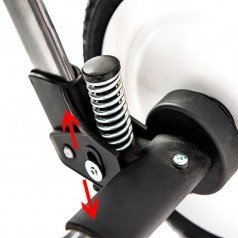 - Наличие задней амортизации колёс с двухступенчатой регулировкой жёсткости (hard/soft)
