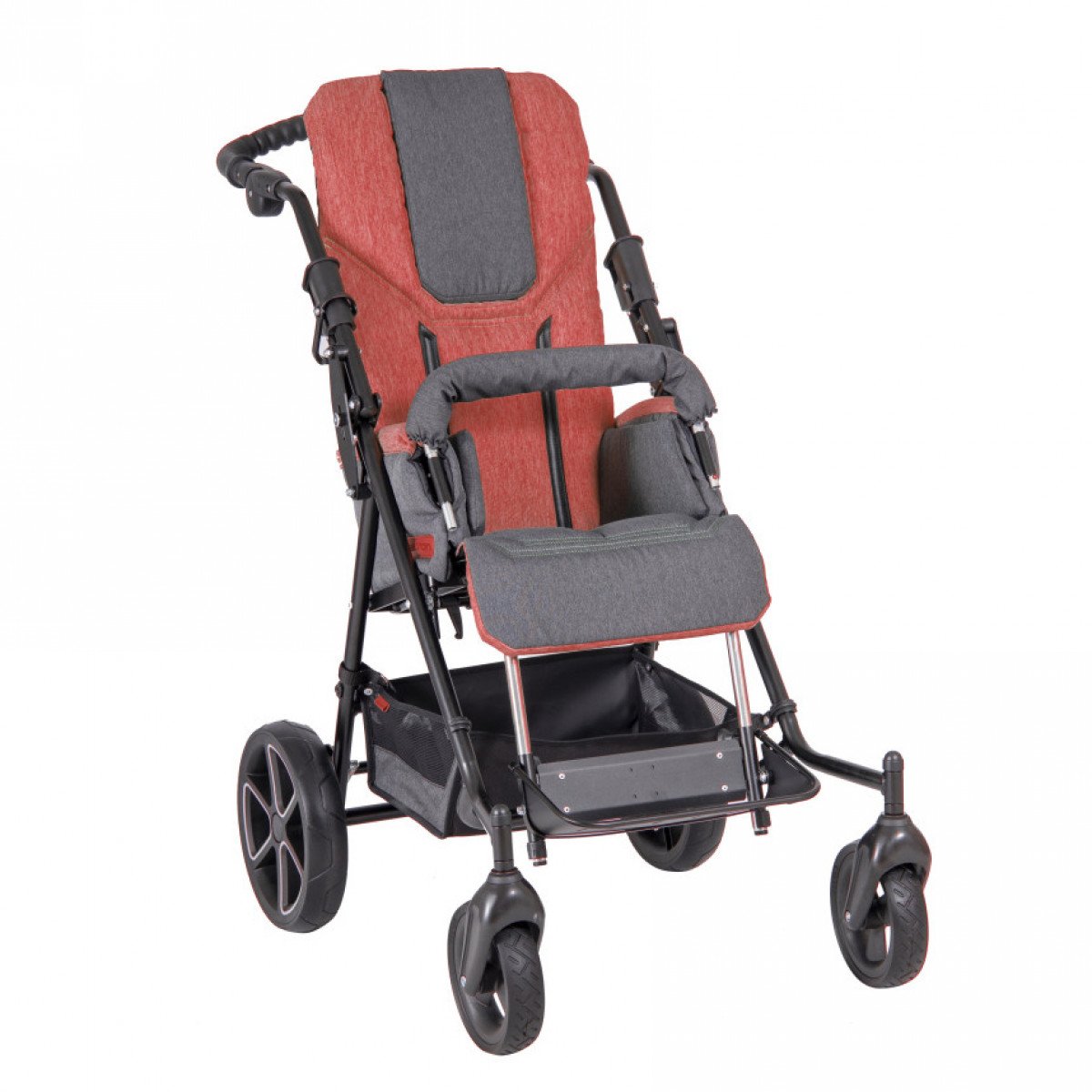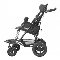 Эргономичная ручка для толкания обеспечивает комфорт сопровождающим ребёнка, а также облегчает управление креслом. Несмотря на большие колеса, коляска очень компактна и легко складывается. Её легко перевозить в машине или хранить дома даже при ограниченном свободном пространстве.