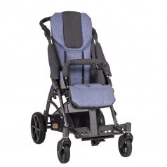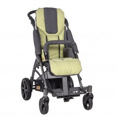 Кресло выпускается в двух размерах – стандарт и макси, благодаря чему можно подобрать наиболее подходящий вариант для каждого ребёнка. Литые колеса увеличенного диаметра (17,5 и 26,5 см.) позволяют легко использовать коляску на любой дороге без лишнего дискомфорта для ребёнка.