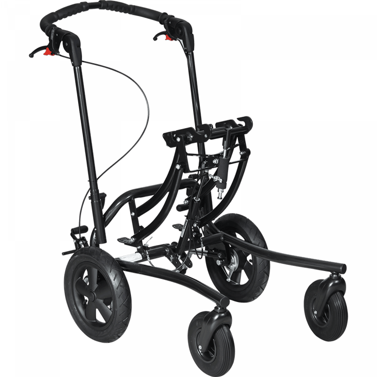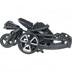 Складная рама коляски выполнена из сплава алюминия и титана, что обеспечивает ей высокую прочность, долговечность и при этом придаёт конструкции лёгкость. Сложить коляску можно даже не снимая сиденье. В таком виде ее легко транспортировать в багажнике обычной машины или хранить в небольшой комнате.