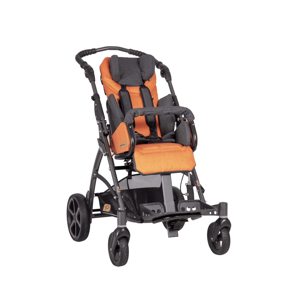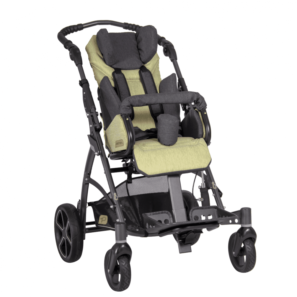 Коляска выпускается в трёх размерах, что позволяет подобрать наиболее оптимальный вариант для каждого пользователя. Сиденье легко можно снять или переставить против направления движения. Все его параметры так же легко регулируются и подстраиваются под потребности пользователя. При необходимости можно использовать подушки Flexi, которые входят в дополнительную комплектацию.