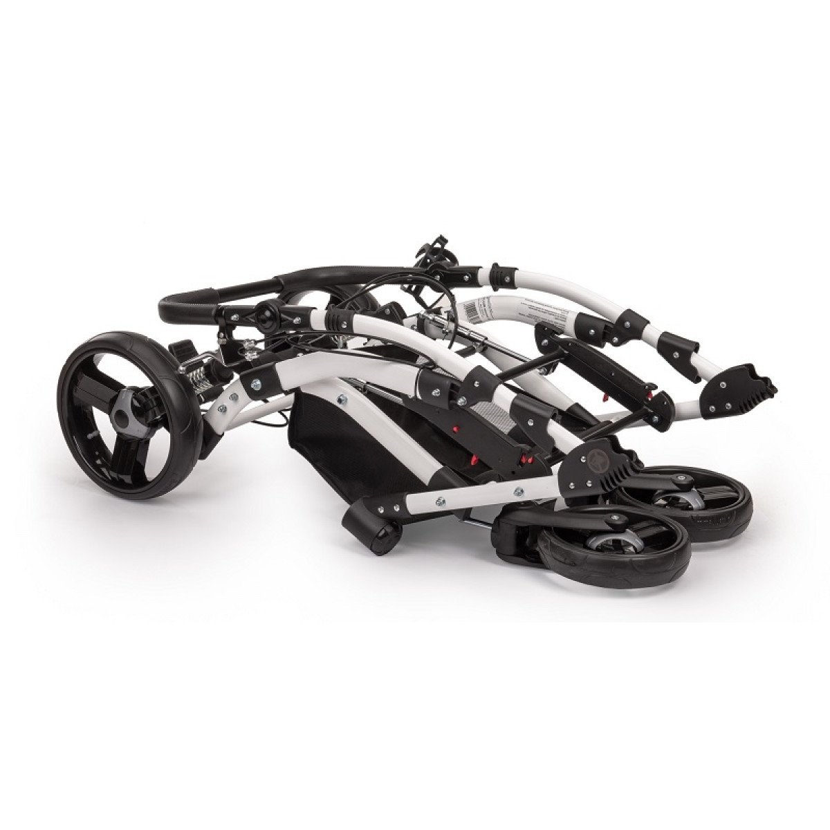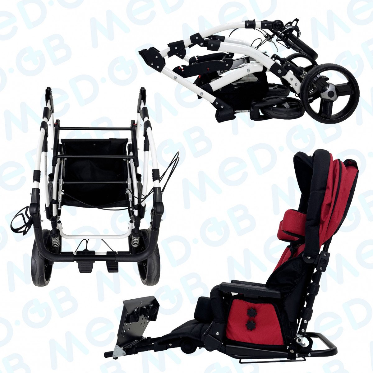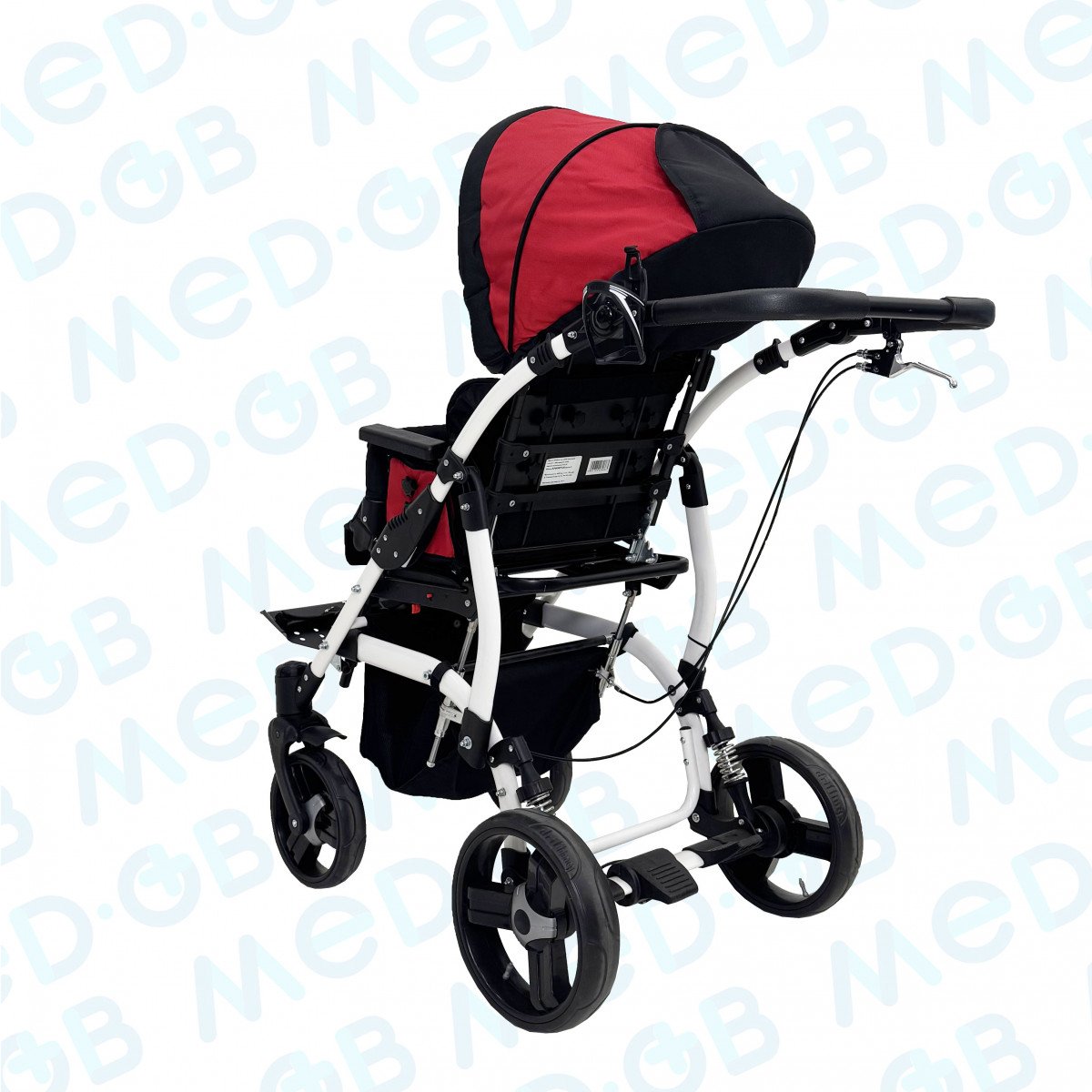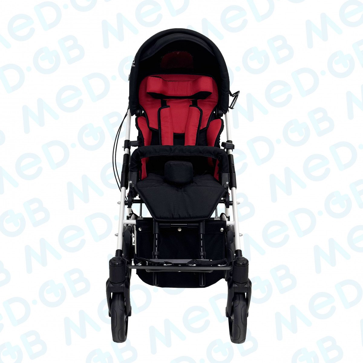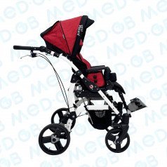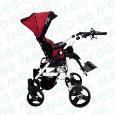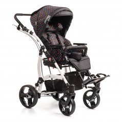 Коляска оборудована плечевыми ремнями и фиксирующим ремнём для бедер, что обеспечивает хорошую поддержку и надёжную фиксацию. Передние колеса имеют хорошую манёвренность, а также их можно заблокировать на месте. Задние колеса амортизированные и быстросъёмные, они оснащены системой тормозов для обеспечения дополнительной безопасности при остановке.