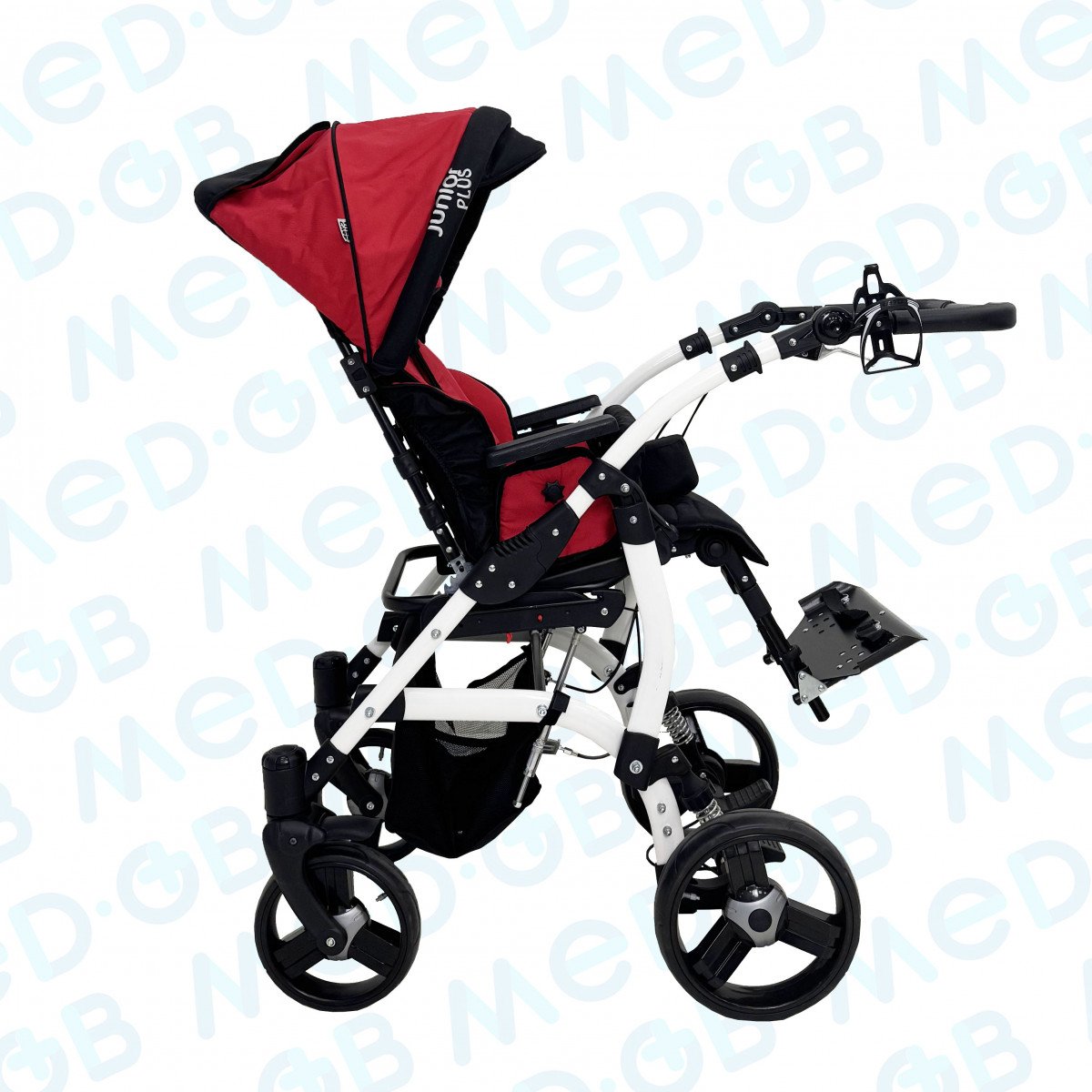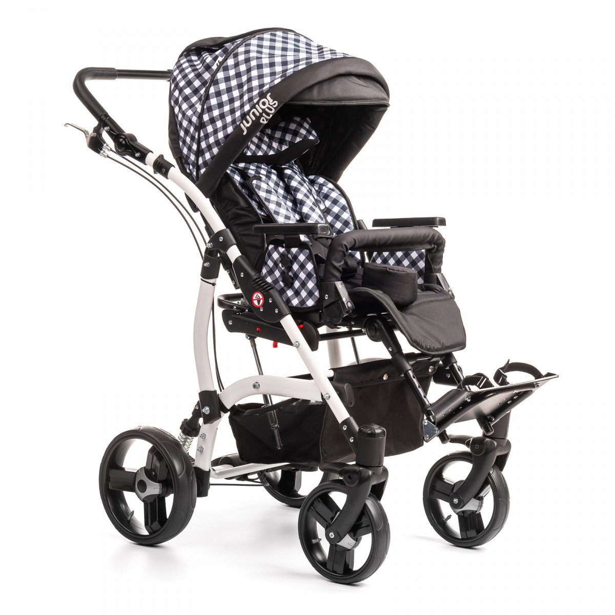 Junior Plus подходит для детей с весом до 30 кг. и ростом до 125 см. (размер 2), а также до 75 кг. и ростом до 165 см. (размер 3). Это европейская коляска с полным набором фиксаторов и аксессуаров.