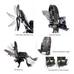 Петли регулировки сиденья расположены близко к суставам пользователя (тазобедренным, коленным и голеностопным суставам). Эта структурная особенность является основным фактором, способствующим хорошему самочувствию ребёнка, так как осанка не изменяется во время регулировки наклона. Угол наклона спинки и сиденья регулируются двумя пружинами, что позволяет сделать регулировку особенно мягкой и плавной. При полном наклоне кресло принимает почти лежачее положение.