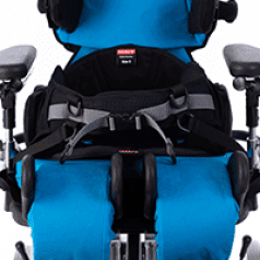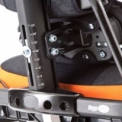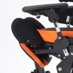 Кресло обладает множеством регулировок. Родитель может изменять угол наклона спинки и сиденья, что даёт возможность длительного использования в течение дня. Регулируемая ширина и глубина сиденья, высота спинки, подголовника и длина подножки позволяют адаптировать кресло под индивидуальные особенности каждого ребёнка. Это критически важно для обеспечения правильной поддержки и предотвращения дискомфорта при длительном использовании кресла. Сочетание регулируемой подножки и наличие фиксаторов коленей позволяет добиваться снижения тонуса в спастичных мышцах. Также присутствует настраиваемая поддержка плечевого пояса, которая помогает стабилизировать верхнюю часть тела.