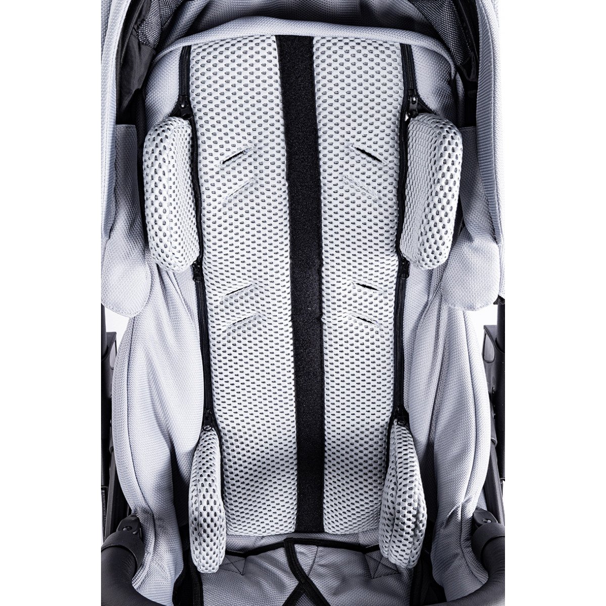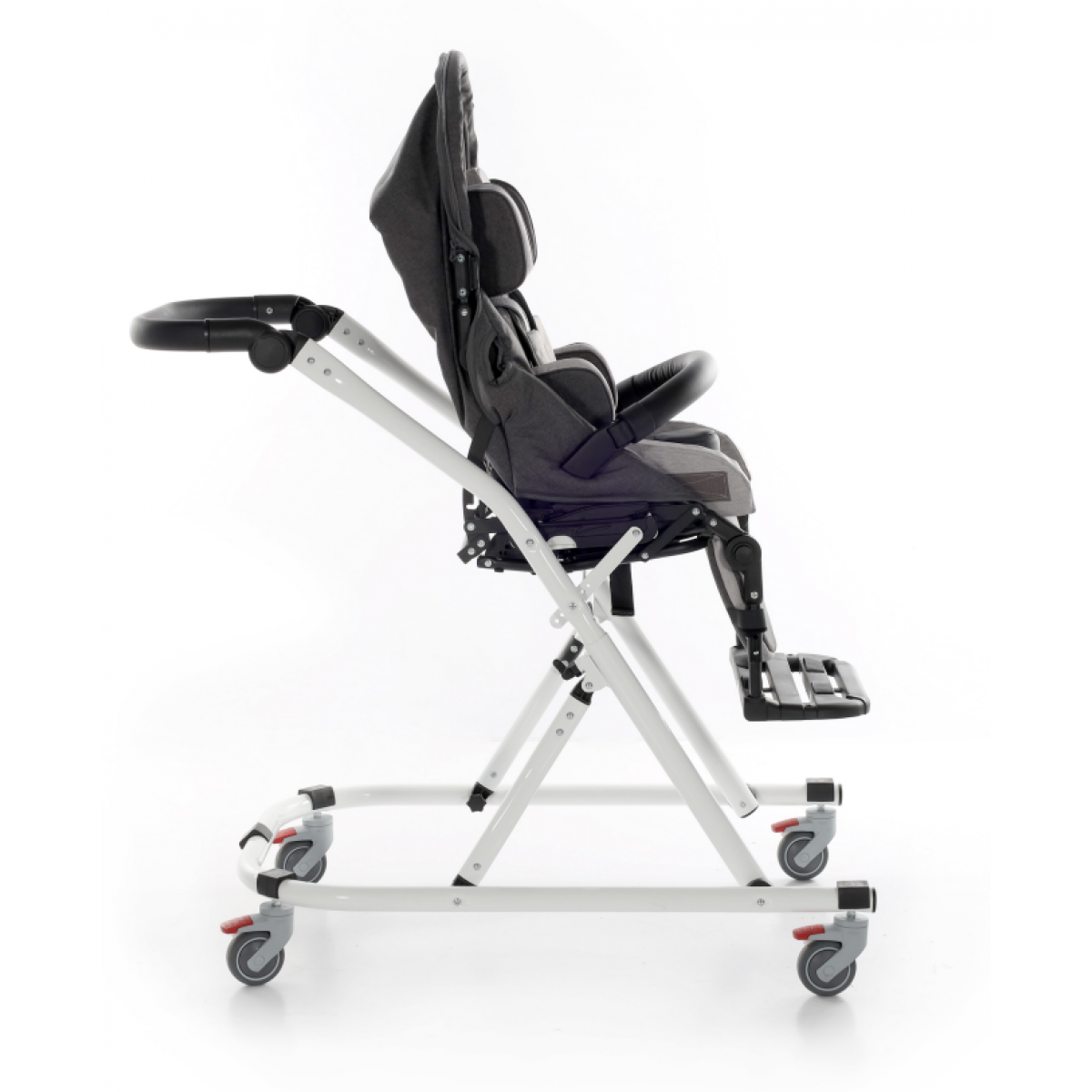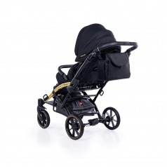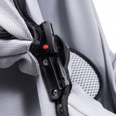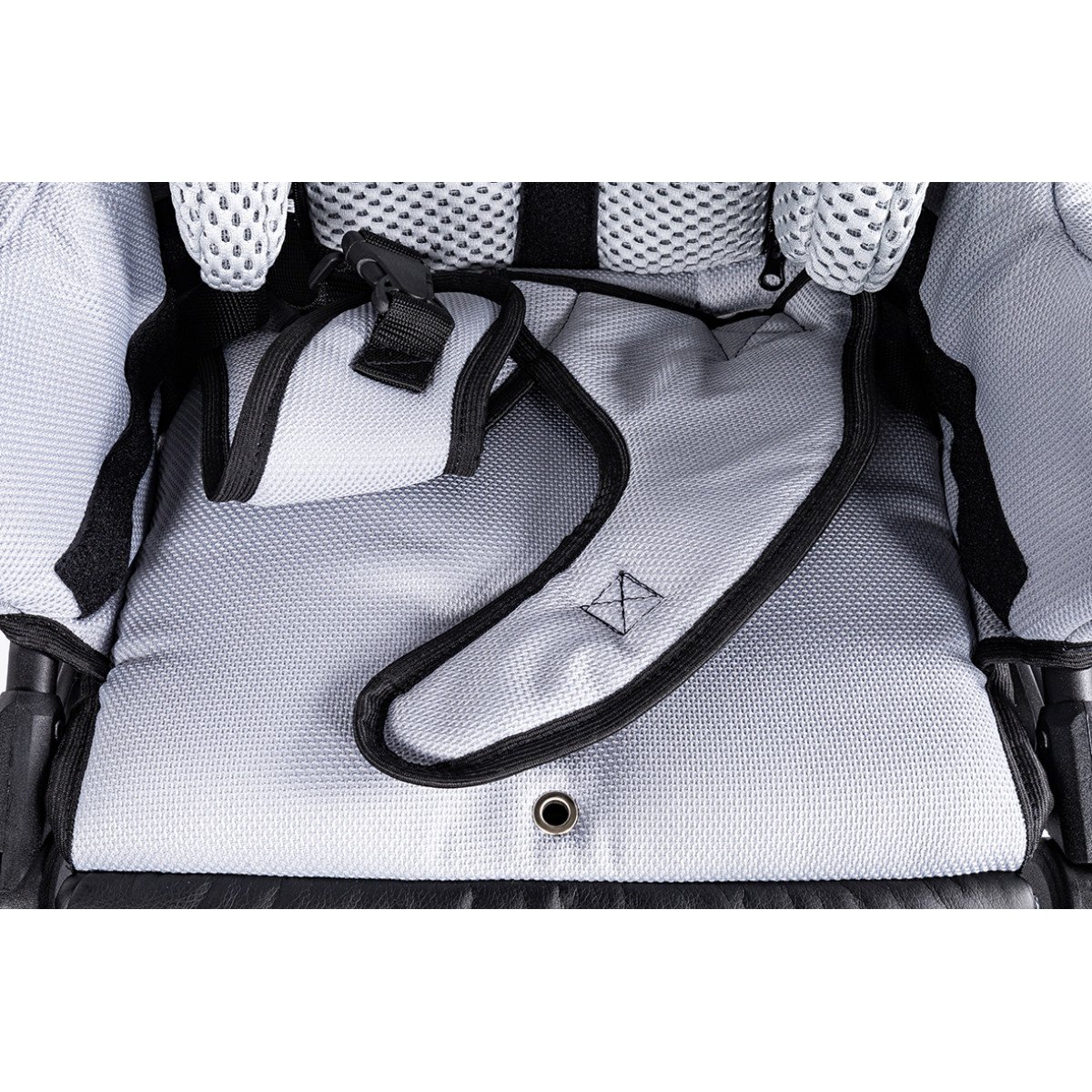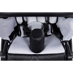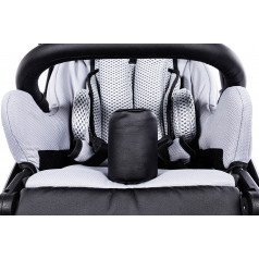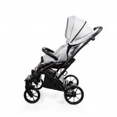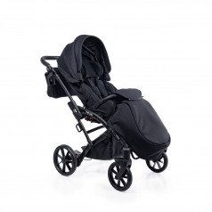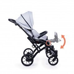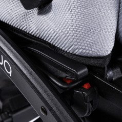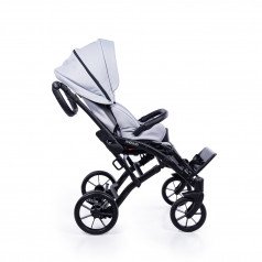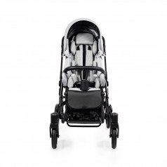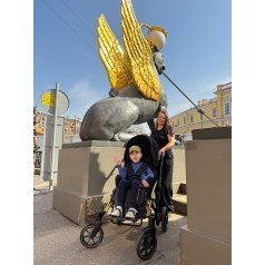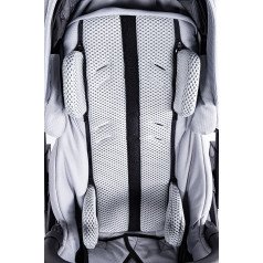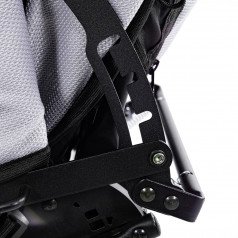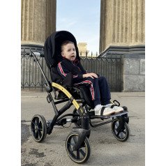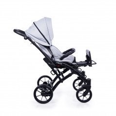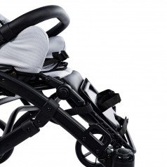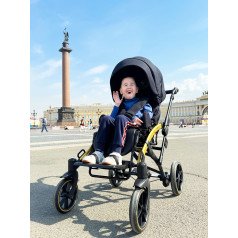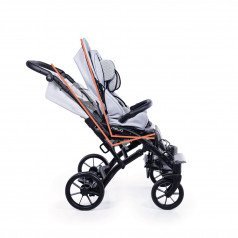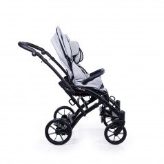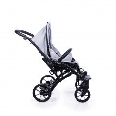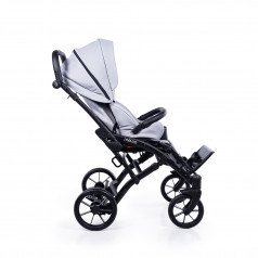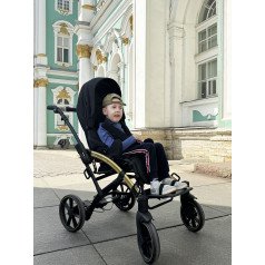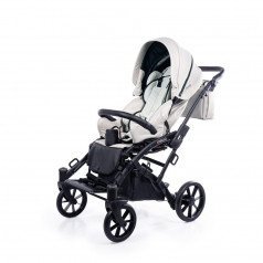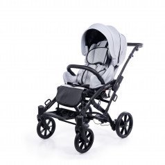 Коляска оснащена анатомическим сиденьем с мягкими вставками и регулируемыми подушками, которые обеспечивают устойчивость и поддержку корпуса. Уникальная функция «колыбель» позволяет синхронно менять угол наклона спинки и сиденья, переходя от активного положения к расслабленному. Надёжные ремни стабилизируют таз и препятствуют смещению во время движения.