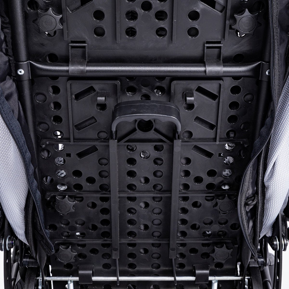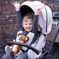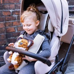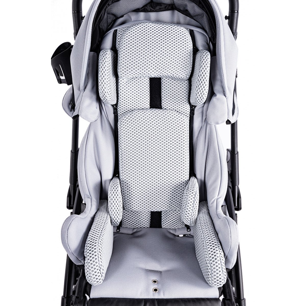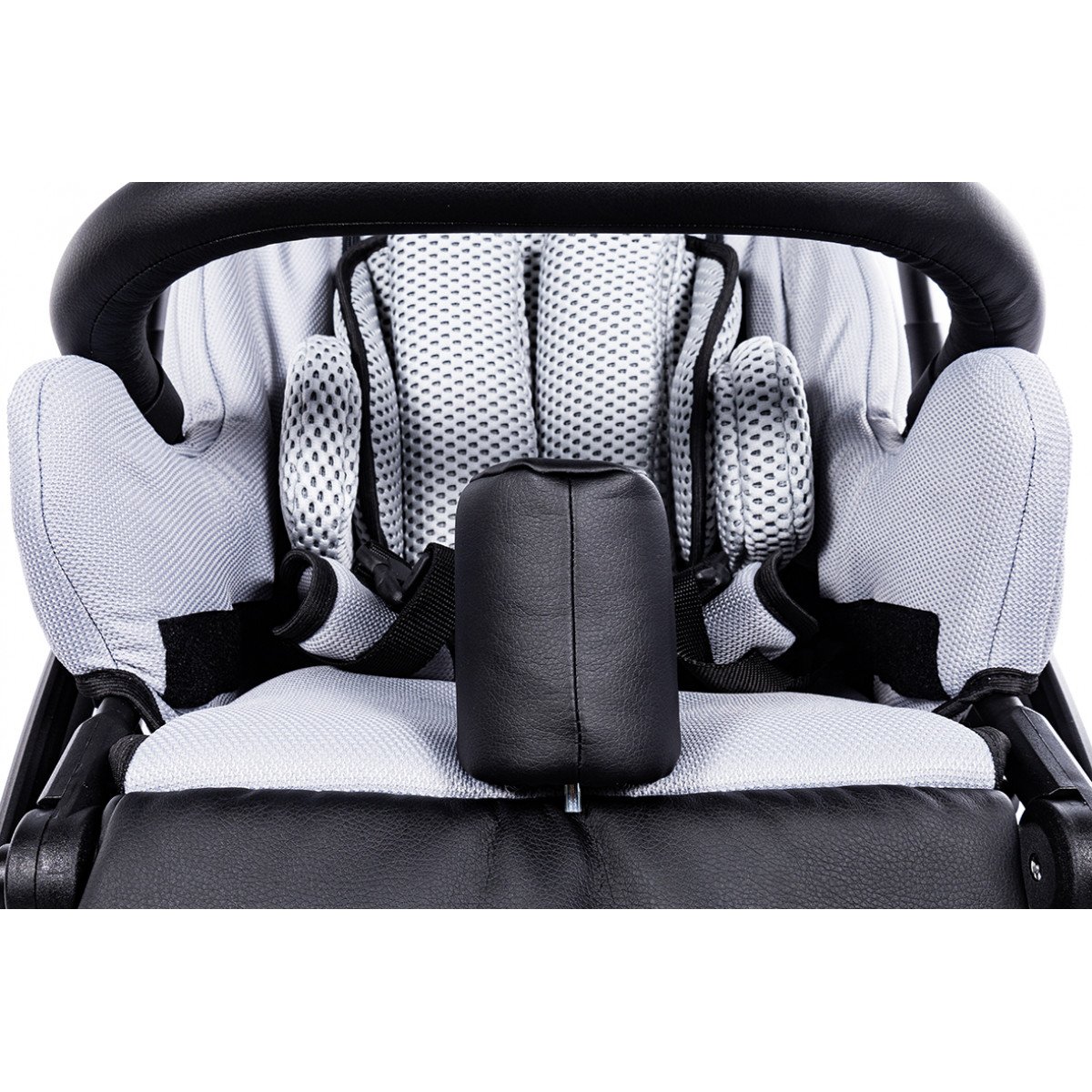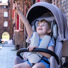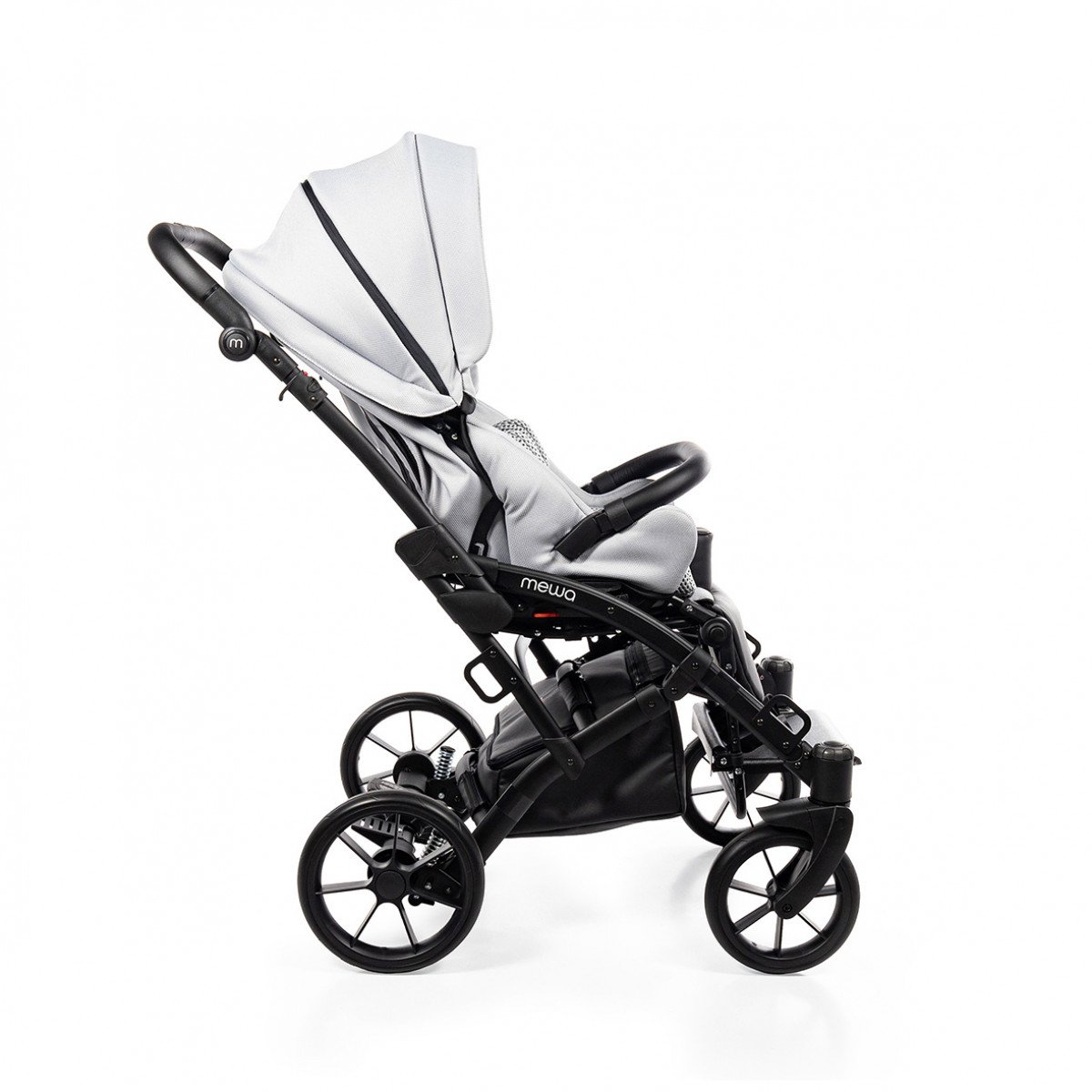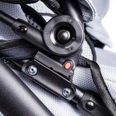 Коляска оснащена анатомическим сиденьем с мягкими вставками и регулируемыми подушками, которые обеспечивают устойчивость и поддержку корпуса. Уникальная функция «колыбель» позволяет синхронно менять угол наклона спинки и сиденья, переходя от активного положения к расслабленному. Надёжные ремни стабилизируют таз и препятствуют смещению во время движения.