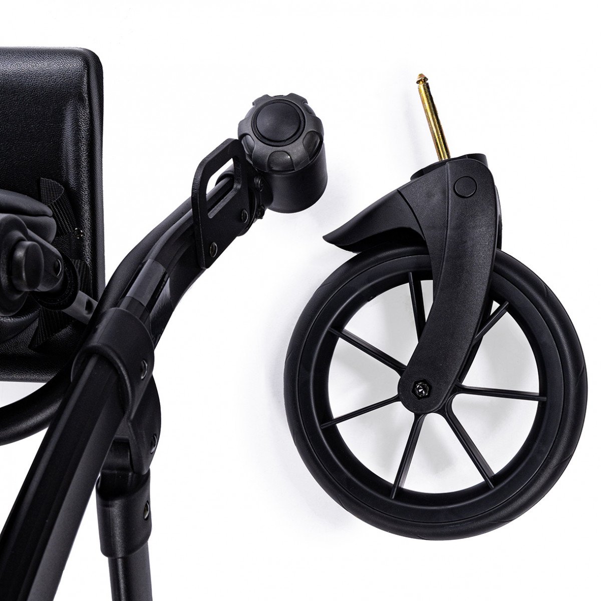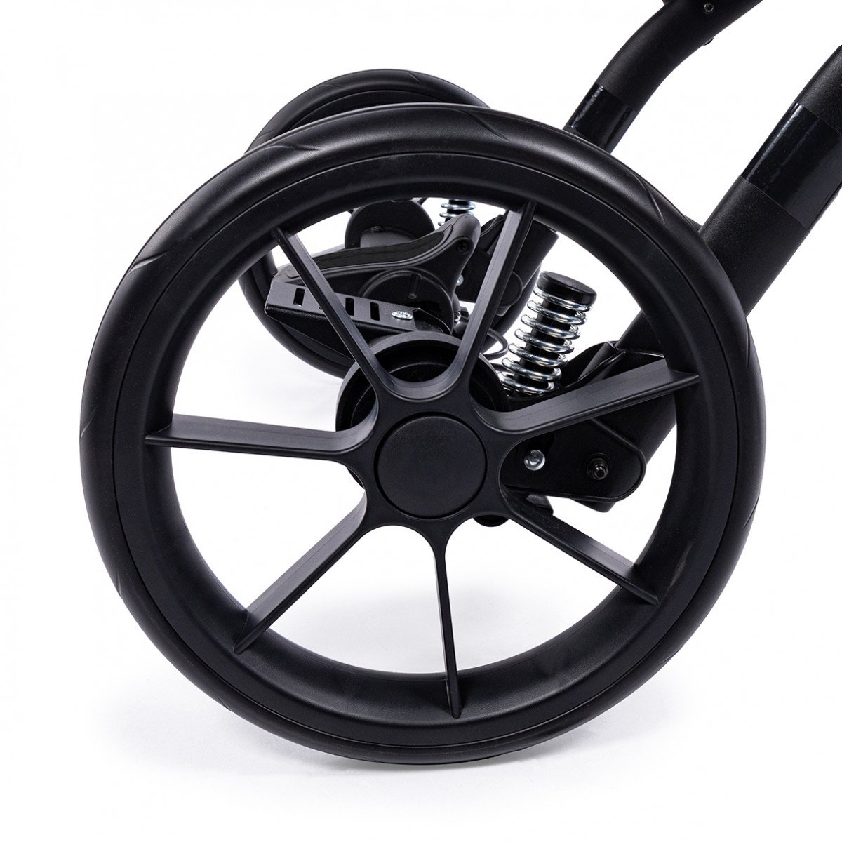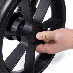 Амортизированные колёса большого диаметра обеспечивают плавный ход даже на неровных поверхностях. Передние колёса можно зафиксировать, что особенно важно при прогулках по паркам, плитке или песку.