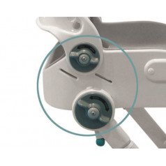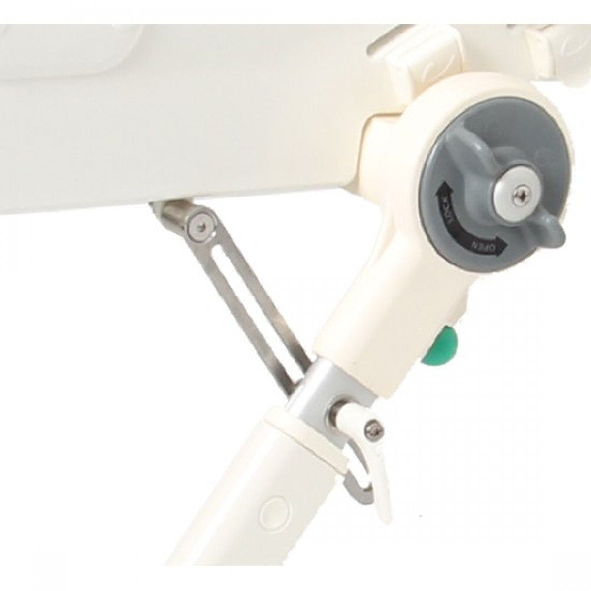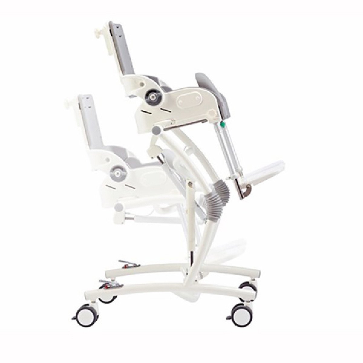Сиденье и спинка меняют угол наклона, высота стула и подножек регулируется, сиденье снимается. Стул изготовлен из лёгких, но прочных нержавеющих материалов, что обеспечивает его долговечность и устойчивость к коррозии. Кроме того, дизайн стула позволяет ему легко раскладываться, что делает его удобным для хранения и транспортировки.