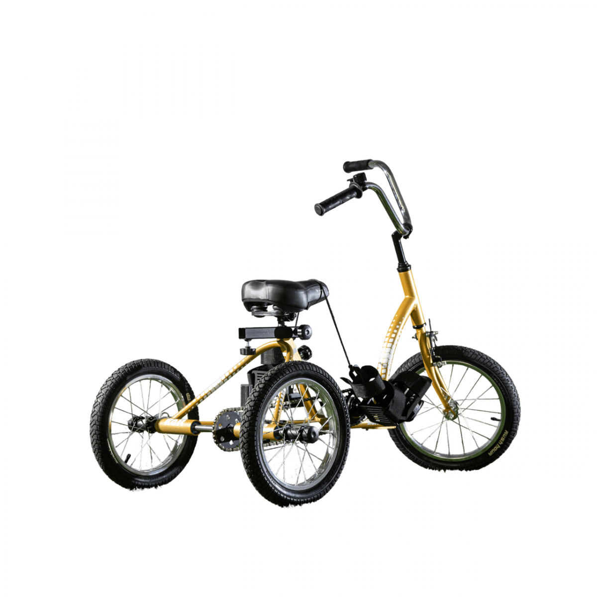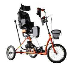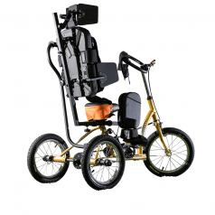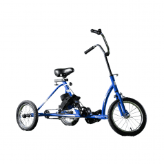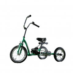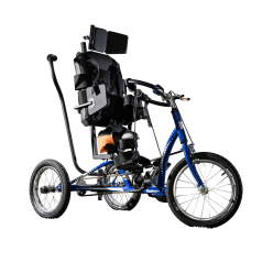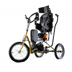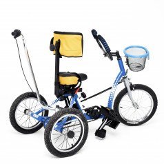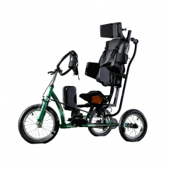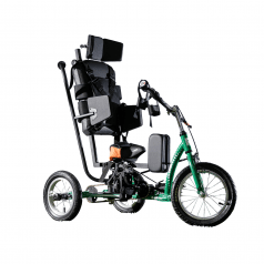 Велосипед обладает лёгким ходом благодаря уникальной геометрии рамы. Даже при минимальном усилии велосипед приводится в движении, что позволяет использовать его даже деткам со слабым тонусом мышц. Конструкция рамы выполнена таким образом, что велосипед легко может быть собран и разобран. Компактный, легко помещается в багажник автомобиля. Эргономическое сидение регулируется по высоте. Стояночный тормоз блокировки движения позволяет использовать велосипед в качестве комнатного тренажёра.